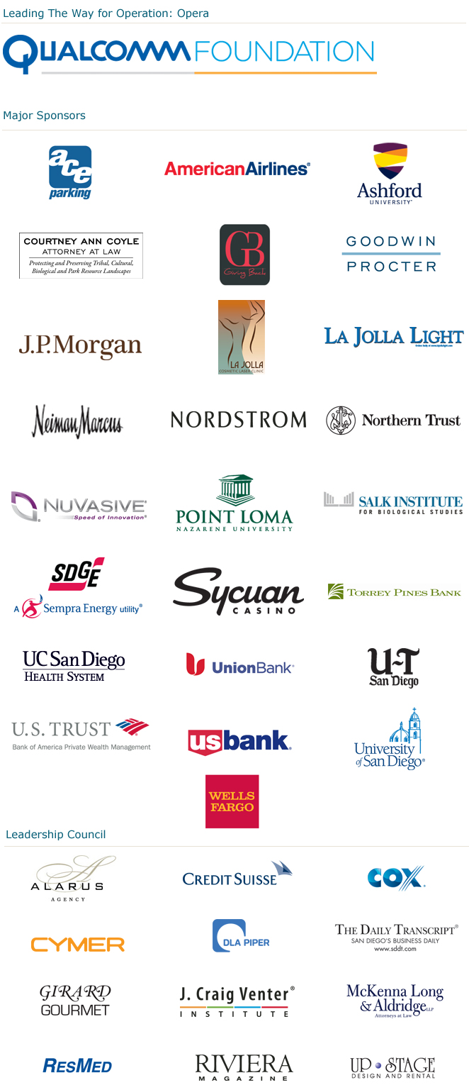 True "Corporate Citizens" the visionary companies that support San Diego Opera make extraordinary contributions to ensure that world-class opera and arts education programs continue to thrive in our community. We invite you to explore their organizations by clicking on their logo or name.