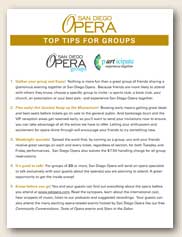 PARTICIPATE GROUPSparticipate is the perfect, easy way to invite your friends, family and business colleagues to experience a fabulous night at the opera together. Any size qualifies as a group when you use participate. Your guests choose and purchase their own tickets online from any area in the theatre so there are options for every budget. San Diego Opera’s participate specialist is only a phone call away to answer questions. |