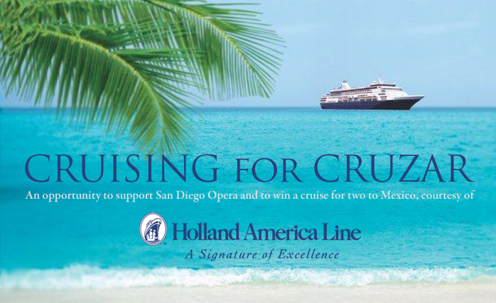 In partnership with Holland America Line, San Diego Opera invites you to purchase tickets for the Saturday, March 16, 2013 performances of Cruzar la Cara de la Luna or to make a contribution to support the Cruzar la Cara de la Luna Student Ticket Initiative Fund. In appreciation of your generosity, we will place your name in a drawing to win a Holland America Line luxurious 7-day cruise for two to Mexico!*